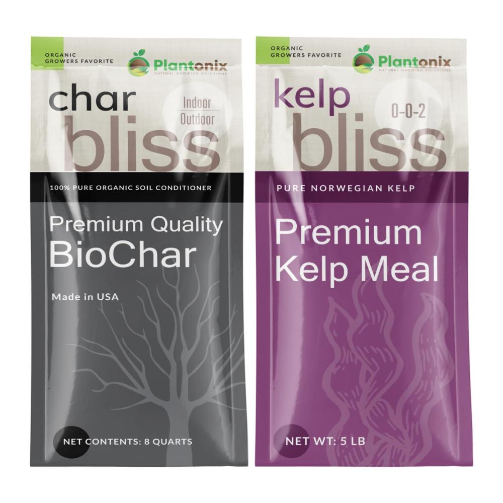 Char Bliss (8 Qts) + Kelp Bliss (5lbs) - Kelp Meal Organic Fertilizer & Organic Biochar for Plants - Biochar Soil Amendment - Charcoal for Plants - Organic Kelp Fertilizer for Plants - Kelp for Plants