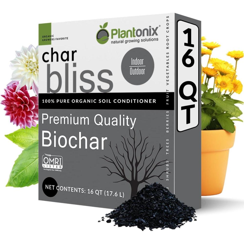 Coco Coir 650gm Bricks + Worm Castings + Mycorrhizal Inoculant + Neem Meal Fertilizer + Organic Biochar for Plants – All Natural Soil Amendments for Plants – Organic Coco Coir for Plants & Gardening(Char Bliss (16 Qts))