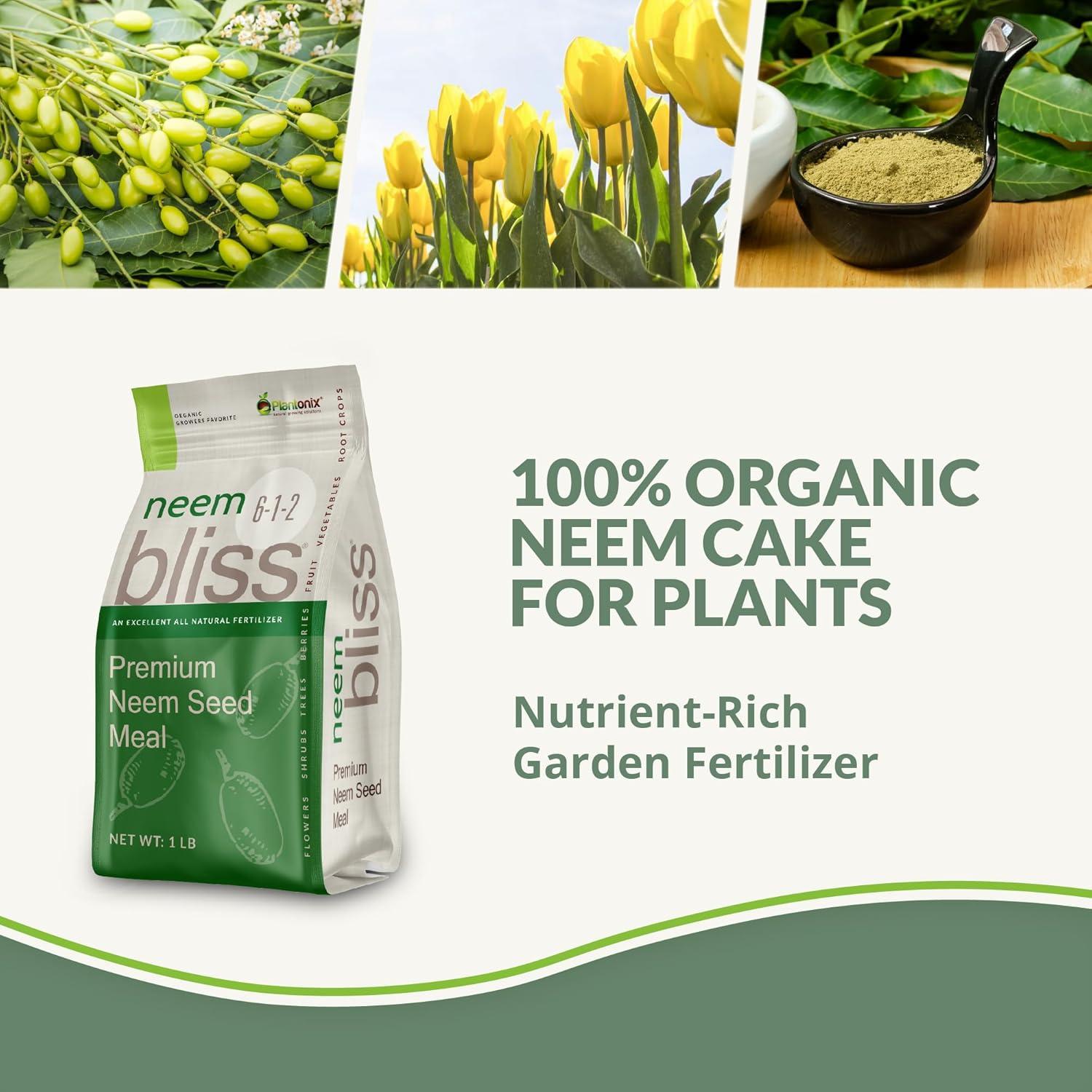 Neem Cake Organic Fertilizer for Plants – Plantonix Neem Bliss is a natural plant fertilizer that enriches soil with vital nutrients and organic matter, providing a slow-release source of nutrients for potting soil and garden soil. Using neem cake powder for plants adds valuable organic material to the soil, improving soil fertility and supporting the growth of beneficial soil microbes.